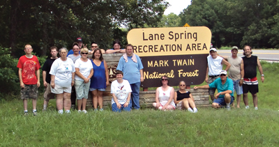 Not every workshop "location" is as scenic as Lane Spring in the Ozarks, but this work crew does show the surprising diversity of employment opporunities offered by Missouri's workshops.
